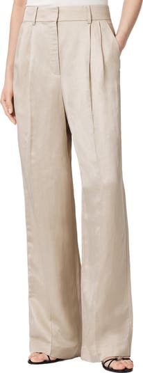Neat pleats give way to a relaxed silhouette in summery pants cut from a linen-enriched fabric,