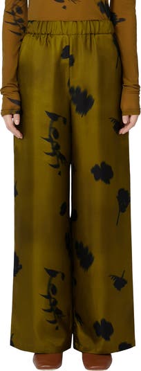 Luxe silk offers a refined appearance in these straight-leg pants fashioned with a comfortable pull-on waist and vibrant print.