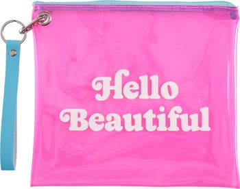 Hello Beautiful Clear Wristlet Bag Plastic Pink