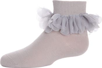 Ankle socks are a darling accompaniment to little flats or sneakers, especially when the rolled-over ankles come with an unexpected, memorable detail: sweet flower petals! Mesh-and-fabric petals surround the ankle portion on all sides, bringing flair to a standard ankle sock. Breathable cotton body ensure comfortable daylong wear for all ages.