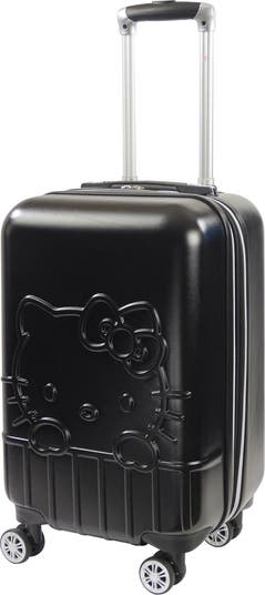 Perfect for the Hello Kitty lover this upscale design 21-inch hard-sided spinner rolling carry-on suitcase luggage is perfect for any journey choose from metallic pink or black.