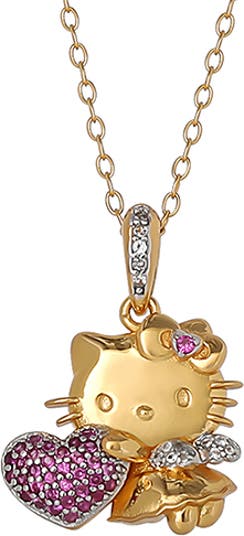 This charming Hello Kitty gold-tone pendant necklace features sparkling pavé crystals and a heart accent, making it a perfect gift for fans and collectors.