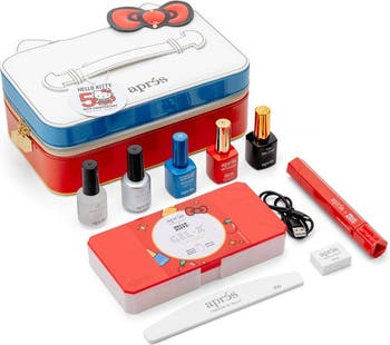 - WHAT'S INCLUDED 15ml pH Bonder 15ml Gel-X® Prep 15ml Hello Kitty® Extend Gel Non-Wipe (Exclusive) 15ml "Bow-tter Together" Gel Couleur (Exclusive) 15ml Non-Wipe Glossy Top Gelcoat Sanrio® Omni Light (Red) 100/180 White Nail File 100/100 White Nail Buffer Hello Kitty® x Aprés Gel-X® Natural Almond Medium Bow Cut Box of Tips (280pcs, 14 sizes) Hello Kitty® vegan patent leather case