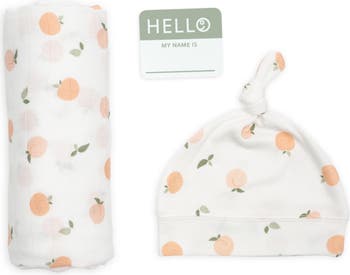 Our Hello World hat and swaddle will have your newborn super cozy and camera ready. This ready-to-use set will make it easy to snap the perfect photo and introduce your little one to family and friends. A special gift for any mom to-be! Each Set includes: silky soft muslin swaddle, adjustable jersey knot hat size 0-4 months, HELLO birth announcement sticker.