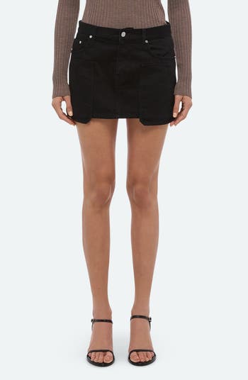 Carpenter-inspired detailing recontextualizes a denim miniskirt with a workwear edge.