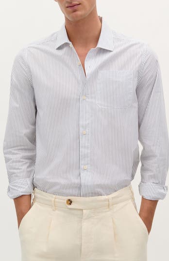 The Helsinki Shirt captures effortless sophistication with its timeless stripes and relaxed silhouette. Perfect for both casual and polished looks.
