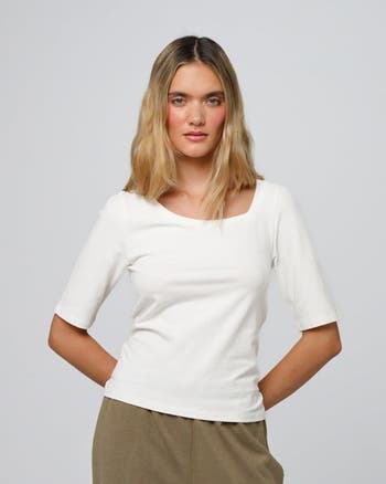 An elegant twist on an everyday essential, Juana's Hemp Essentials Asymmetrical Neckline Tee is cut from a breathable hemp and organic cotton blend with a touch of stretch for comfort and shape. The off-center neckline adds quiet drama & subtle enough for day, striking enough for evening.Rooted in sustainable women's clothing, this eco-friendly short sleeve tee balances soft handfeel with gentle structure so it drapes cleanly and layers with ease. Natural fibers deliver airflow and seasonless comfort, making it a reliable go-to in modern wardrobes.Style it with tailored trousers, denim, or skirts for minimalist polish, or pair with plant-based loungewear for casual refinement. A refined women's essential t-shirt with a renewal point of view