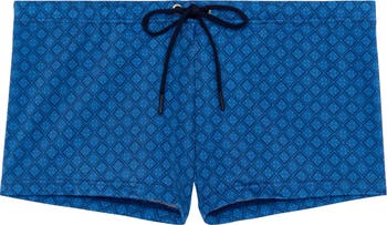 The HENDAYE swim shorts are swimwear with an elegant, modern, slim fit that reduces chafing and offers excellent freedom of movement. The soft foam lining at the crotch and drawstring waist ensures optimum support for comfort in all situations. These swim shorts are made from high-quality microfiber. This fabric is resistant to chlorine or salt water, won't crease and respects the intensity of colors. It's the ideal way to make the most of your summer and enjoy more and more swims in the sea or dives in the pool. The swim shorts adapt perfectly to every figure and enhances the shape of your body. Tastefully designed by our designers, the HENDAYE swim shorts are decorated with elegant tie patterns in light blue diamonds on a navy blue background. This summery, colorful print makes them an elegant and stylish swimwear for all looking for comfort and originality. All our swim shorts are OEKO-TEX® certified, a guarantee of the quality of the materials used and respect for the sensitivity of the skin.