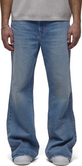 These vintage-inspired jeans are faded for a lived-in look and feature extralong legs with a flared profile.
