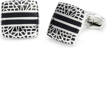 An eye-catching geo design enlivens these silvertone cuff links that add a distinguished touch to your look.