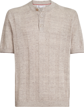 - Henley collar in rib knitRegular shoulderRib knit cuffs and bottom bandRib knit