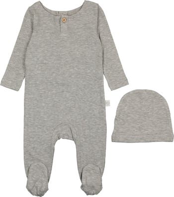 Introducing our Henley Footie in grey. Made from butter soft material, it has a great feel on the skin. Featuring a Henley style, it's both stylish and functional. It's a must have staple for your baby's wardrobe! Fits true to size. Footie and hat included