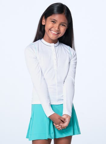 She'll play in style with our must-have long sleeve henley, crafted from lightweight performance rib fabric thatís perfect for active days on the court or course. Perfect for layering or wearing solo, this versatile top combines comfort and functionality, making it an essential addition to her sports wardrobe.