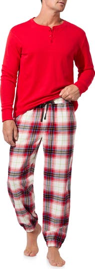 Henley Pajama Top and Organic Cotton Flannel Pajama Joggers Set