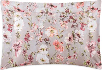 - The reverse side of pillowcases is decorated with garden flowers in muted colors as if in blurred watercolors and with wide borders on the three sides