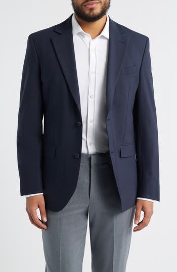 Crisp, stretch-enhanced wool cast in a versatile solid brings refined versatility to suit jacket that's tailored in a slim fit and fitted in the waist for a smartly refined silhouette. Styled with traditional notched lapels, it brings elegant detailing to your formal look.