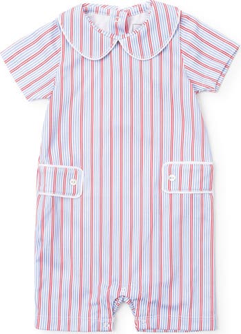 Pima cotton shortall with contrast stitching on collar and side plackets. Snaps in stride and back of neck. Made from 100% Peruvian Cotton.