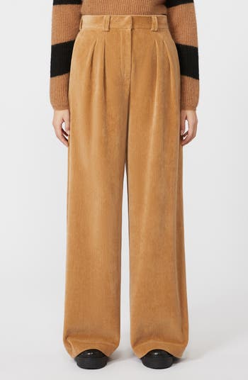 Add a plush touch to your casual pants option with a courduroy option pleated at the waist and finished with widened legs.