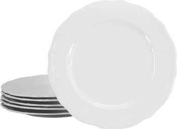 The Elama Henryi 6 Piece 10.6 Inch Porcelain Dinner Plate Set in White is a perfect addition to any dining table, offering both elegance and durability. Crafted from high-quality Porcelain, these dinner plates are designed to withstand everyday use while maintaining their sleek, timeless appearance. The classic white finish ensures that these plates complement any table setting, from casual meals to more formal occasions. With an 10.6-inch diameter, these dishes hold generous portions of your favorite meals, perfect for all your dining needs.These plates are not only stylish but also practical, as they are both microwave and dishwasher safe, allowing for easy reheating and cleaning. The sturdy porcelain construction ensures longevity, making this set an excellent choice for daily use or for entertaining guests. Whether you're hosting a dinner party or enjoying a simple meal with family, the Elama Henryi Dinner Plate Set adds a touch of sophistication to any meal while providing the convenience you need for modern living.