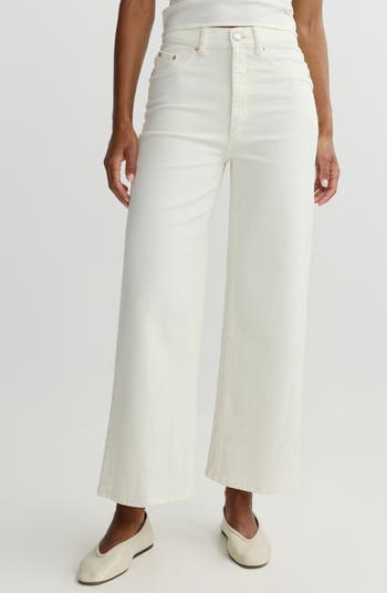 Made from low-stretch denim in a soft-white wash, these vintage-vibe jeans are fitted through the high waist and wide through the ankle-length legs.
