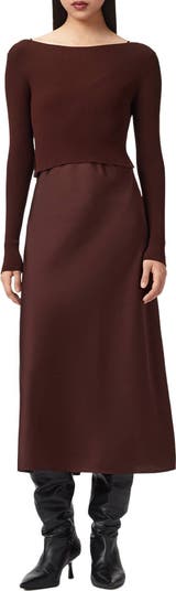 Sleek style is the common factor in any way you wear this sweater-and-slipdress combo, thanks to the bias cut of the dress and the fitted knit of the sweater.