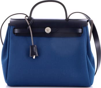 Pre-Owned Hermes Herbag Zip Leather and Toile 31, Main, color, Bleu Outremer