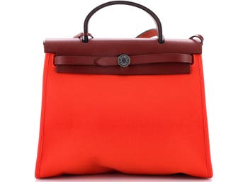 Pre-Owned Hermes Herbag Zip Leather and Toile 31, Main, color, Orange Poppy