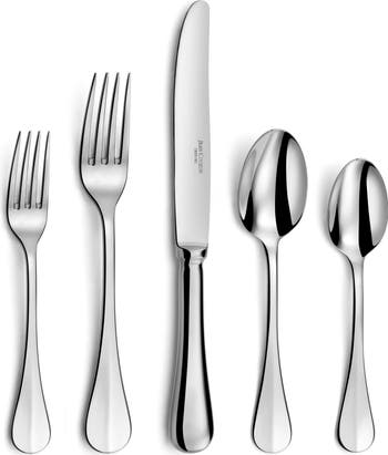 Expertly crafted from durable 18/10 stainless steel, Heritage offers classic, timeless elegance for everyday use. Complete with a table knife, fork, teaspoon, dessert spoon, and dessert fork, this set is the perfect addition to any dining table.