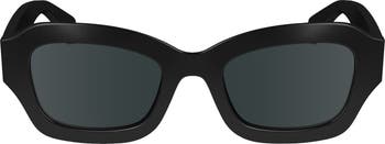 A retro cat-eye silhouette brings throwback style to scene-stealing sunglasses agleam with logo-etched accents at the temples.