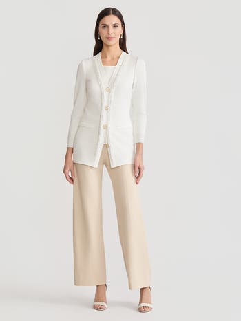 This beaded trim flat knit cardigan is a refined layering piece for spring occasions, combining timeless elegance with modern polish. Designed with delicate beaded detailing, a smooth flat knit texture, and a elegant silhouette, it elevates dresses and separates with subtle sophistication. Ideal for workwear, special events, and polished daytime looks, this cardigan delivers luxury versatility, effortless layering, and season ready style.