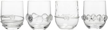 Mouth-blown stemless wine glasses showcase Juliska's artful glasswork with an assortment of their signature designs for a unique bohemian collection.