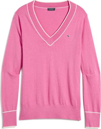 This elevated V-neck sweater is knit from a cashmere-kissed cotton blend and designed with tipping at the neckline and cuffs.