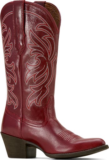 Two-tone stitching creates iconic Western designs on this block-heel boot shaped from smooth leather.