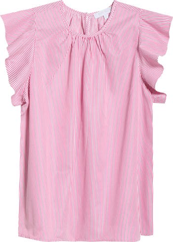 Ruffle trim provides a fresh, lively finish for this cotton-blend shirt patterned in crisp stripes.