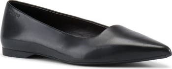 A pointy toe sharpens this leather ballet flat distinguished by a squared topline for a contemporary spin.