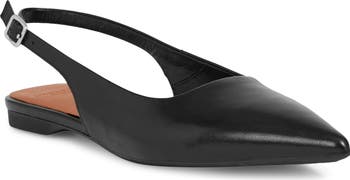 A slingback strap provides a perfect counterbalance to the pointy toe of this sleek and versatile flat.