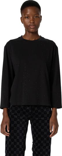 Relaxed long sleeve crew neck top, cut for graceful drape and all day comfort, subtle sparkle adds quiet glamour from day to night.