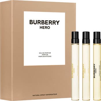 - Travel-size Hero Parfum Intense (0.33 oz.): a woody, spicy fragrance that intensifies the power and sensuality of Burberry Hero by adding a deep leather note
