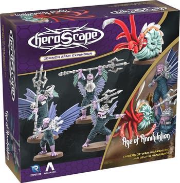 HEROSCAPE: KRAKENLING & GELYRIE VANGUARDS ARMY EXPANSION - The endless wars that rage across the land and skies of Valhalla have sent ripples deep into the planet’s enigmatic and dangerous seas. Breaking a decades-long policy of nonintervention, the Kyrie’s aquatic cousins, the Gelyrie, have sent their first wave of soldiers surging to the surface, unfathomable monsters in tow... This common army expansion contains one 4-figure common squad and one common hero players can use to customize their armies! The Gelyrie Vanguards rise with the tide and can surge forward and strike without warning with Tidal Advance. The Krakenling can teleport across the battlefield, swap places with enemies, and unleash multiple attacks upon your foes. Unleash these aquatic forces upon your enemies! This is add-on content. A Battle Box and/or Master Set is required for gameplay. EXPANSION: Add on content for the Heroscape Miniatures Game - Battle Box or Master set is required to play - 5 Highly Detailed, Fully Assembled Unpainted Miniatures and 2 Army Cards.