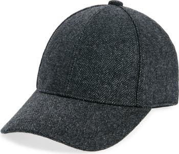 A subtle herringbone pattern gives visual dimension to this wool-blend baseball cap styled with an easily adjustable back strap.