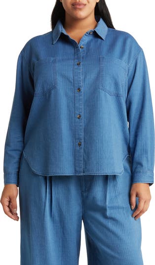 Every closet craves this denim boyfriend shirt designed in an indigo wash with chest pockets.