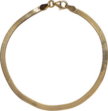 Whether stacked or worn solo, this herringbone chain bracelet will shine thanks to a plating of warm 18-karat gold.