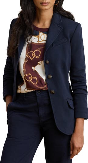 Tonal texture defines an expertly tailored blazer cut from a cotton-forward fabric.