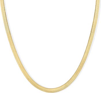 This herringbone necklace is made from soft 18K gold over stainless steel that’s flexible, allowing it to move fluidly and lay flat against your skin for a liquid gold feel. Wear it solo or layered it with similar styles from the label’s water proof collection.