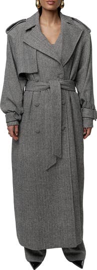 Our new Herringbone Oversized Trench Coat is a modern take on the classic silhouette. This stunning coat features a refined herringbone pattern that adds texture and depth to your cold-weather wardrobe. Designed with a traditional double-breasted front and storm flaps, it offers a structured yet relaxed fit that drapes effortlessly over any ensemble. Adjustable buckled cuffs and a self-tie waist belt allow you to customize the fit, sealing in warmth while defining your shape. Whether layered over office attire or styled with casual denim for a weekend stroll, this trench coat delivers true elegance. Minimal stretch. Oversized.