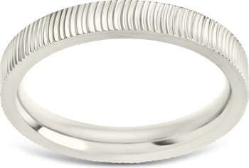 Herringbone ribbing creates dimension and texture on this shiny band ring that will be a welcome addition to your stack.