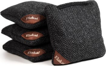 - *One set of four (4) 6-in x 6-in all-weather, Herringbone Bags *Premium herringbone material for superior playability *Fast-playing bags with the softest feel *Double-stitched seams for extra durability *Resin-filled bags weighing 14oz - 16oz per bag