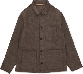 The Tristan Herringbone Wool Work Jacket is inspired by traditional workwear, made in Italy by Fortela . Crafted from William Bliss by Fox Fabrics herringbone wool, it features a regular fit, three front patch pockets, and a donut collar. A timeless piece, reflecting Fortela's commitment to quality and sartorial craftsmanship. This jacket is an investment in style and longevity, perfect for those who appreciate conscious fashion.