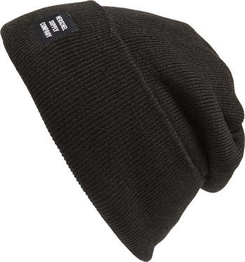 An essential knit beanie is branded with a small logo tag on the wide fold-over cuff, adding the brand's heritage aesthetic to your look.