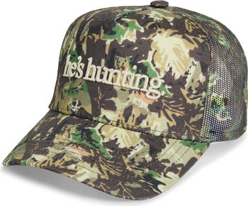 Cheeky embroidery adds a playful feel to this vintage-inspired trucker hat outfitted with an adjustable snapback strap.